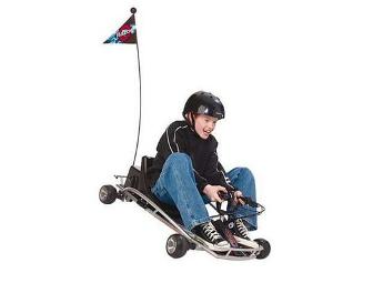 Hop on this silver and black beauty and cruise. This Razor Ground Force electric Go-Kart features a hand-controlled accelerator and brake located right on the steering wheel. Enjoy up to 45 minutes of continous drive time, at speeds up to 15 mph!