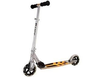 This Razor® Cruiser Scooter is designed with flexible, weight absorbing extra wide wood desk for a comfortable ride, large 125mm urethane wheels so you quickly can get where you want to go, and a patented folding mechanism. The aircraft-grade aluminum construction provides lightweight durability and the patented read fender breaks offer reliable stopping power.