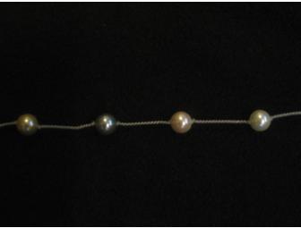 HAND KNOTTED PEARL NECKLACE MADE BY A PEIRCE MOM. This tincup style peal neckalce is a gorgeous multicolored strand that is hand knotted with a light grey silk thread. It contains a variety of pastel colored Indian pearls including white, golden, grey/silver, and pastel pink. Works perfectly for casual, business, and evening attire and matches everything!