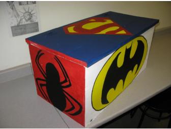 Super Heroes One-of-a-Kind Toy Chest Hand Painted by Extended Day Students