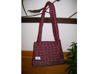 Ashby Perry bags are reminiscent of Vera Bradley's. This roomy bag is the "Oakton." The quilted fabric is a gorgeous red paisley / floral pattern. The bag has one large compartment with slip pockets sewn into the sides in the same pretty red quilting. The closure is a large flap that closes with a hook and loop fastener. New with tag.