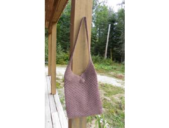 This is an Island shoulder bag by Harry Haslett. This is sturdy taupe colored crochet bag with cotton lining. It has a zippered top with decorative button closure and one inside sippered pocket.