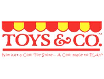 This birthday party package includes a $50 gift certificate to Party City, 6 cupcakes from Polka Dot Bake Shop and a $40 gift certificate to Toys & Co. plus an adorable Gund stuffed dog.