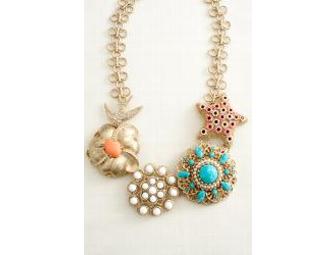 A fearless and fun brass chain with four acrylic bead-accented rosettes and a Czech crystal studded bird. 18.5" length w/2" extender. A fun and colorful piece from Stella & Dot's Palm beach collection!