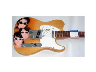 The guitar was hand airbrushed by one of the nation's leading airbrush artists. Finished in a clear that will ensure this artwork to last a life-time, this one of a kind rare piece of memorabilia could never accurately be shown in a simple internet scan, so count on your mouth dropping wThis is a brand new full size fully functional Autograph Pros tele guitar hand signed in person by Jonas Brothers! The guitar was hand airbrushed by one of the nation's leading airbrush artists. Finished in a clear that will ensure this artwork to last a life-time, this one of a kind rare piece of memorabilia could never accurately be shown in a simple internet scan, so count on your mouth dropping when you open this up and hold it up in natural sunlight. The pearls, the glimmers, the top notch artwork will all blow you away. There is only one item greater than an autographed guitar, and that's a custom airbrushed autographed guitar! In addition to our own certification this item has been examined and certified authentic by PSA/DNA and features their tamper resistant PSA/DNA sticker with unique # which can be looked up on their website for confirmation. The PSA/DNA # is: J16302. PSA/DNA is the world's leading third party autograph authenticator. This item has undergone their full thorough examination and was deemed hand signed and authentic. It was then marked with a dna strand, invisible to the naked eye but can be viewed using a specially calibrated infrared laser. Their authentication firm includes life long experience, a nationally recognized reputation, the largest exemplar file in the hobby and formal training in the field of Forensic Document Examination combine to offer the most reliable service to identify autograph legitimacy. The Letters of Authenticity that are generated are guaranteed to be accepted by any major auction house . Clientele include most national auction houses (Christie's, Mastro Fine Sport, Grey Flannel, Hunt Auctions, etc), dealers, collectors and investors nationwide. Their certification definitely adds great value to this autographed item. Simply put, having documentation from a UACC Registered Dealer and also from PSA/DNA puts this item in the most elite and sought after collectible category available. M. Ward Autographed Signed In addition to our own certification this item has been examined and certified authentic by PSA/DNA and features their tamper resistant PSA/DNA sticker with unique # which can be looked up on their website for confirmation. Item will be shipped in a manner to ensure a safe arrival. hen you open this up and hold it up in natural sunlight. The pearls, the glimmers, the top notch artwork will all blow you away. There is only one item greater than an autographed guitar, and that's a custom airbrushed autographed guitar!????