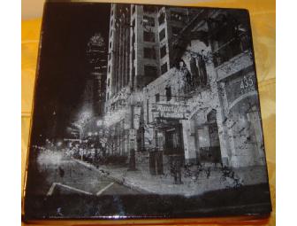 "On The Green", mixed media (acrylic, photography, and resin) of the historic Ratcliffe's Flowers building in Uptown by John Lawton Cowan.