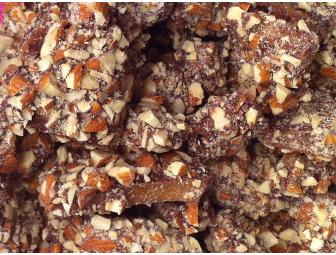 Made to order, 7 pounds of THE most AMAZING English Toffee! This heirloom recipe is highly addictive! Each melt in your mouth piece of toffee is hand dipped in chocolate and chopped almonds. The ultimate treat for yourself as well as a delicious gift for giving, particularly during the holidays...family, friends, teachers, coaches, etc. May be packaged in 1/4 pound, 1/2 pound and/or 1 pound portions, which are individually packaged in a clear cellophane bag and tied with a beautiful ribbon.
