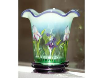 Since 1905, the name Fenton has been synonymous with the highlest quality of art glass. This is a signature vase, hand painted and signed by Bill Fenton. It stands 71/2 inches high and is beautifully painted with flowers.