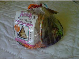 This Mexican Party hat contains Margarita mix, salsa and chips, hot sauce, plates, napkins and party favors.