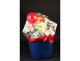 Everything and more you need to keep the family entertained and happy. There's something for everyone. Large blue bucke contains; 14 assorted DVD's, several decks of playing cards, several boxes of various candy, 20 plus assorted board games for various ages. Sure to provide hours of fun year round.