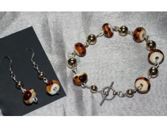 Lamp-work , sterling silver and gold-filled beads bracelet with matching earrings. Lamp-work designed by Kansas City artist Sara Sally LaGrand (prettybabiesglass.com). Lamp-work is made from melted Italian glass.