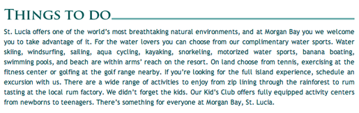 You are bidding on an all inclusive, 7-night resort stay certificate for two ocean view rooms at Morgan Bay Beach Resort, St. Lucia.