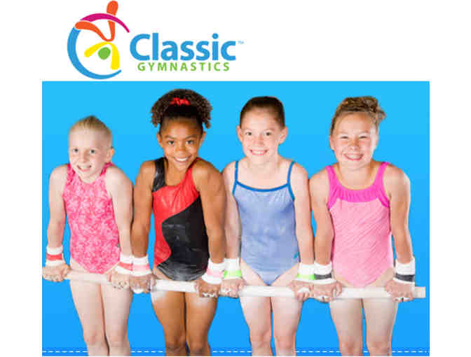 One session of gymnastics at Classics Gymnastics in Chanhassen plus t-shirt (child's medium), gymnastics cup & balloon. Session IV starts in March 2014 and runs for 10 Weeks.