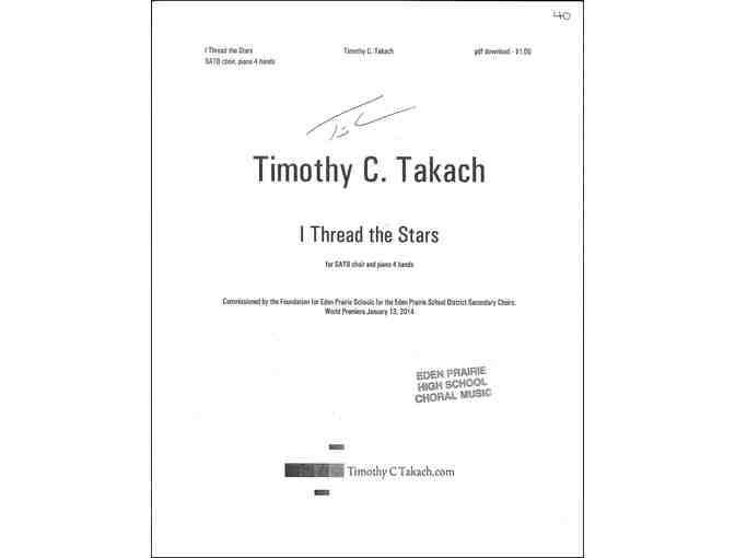 "I Thread the Stars" music sheet signed by Tim Takach.