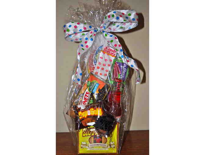 Begin with a basket from Rocket Fizz, including Raisinets, Candy Buttons, Wonka candy, CupoGold, soda and LARGE sucker as well as $20 from Baskin Robbins & $20 from Cold Stone Creamery!