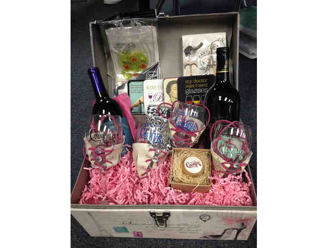Wine, glasses, ice bag to chill the wine, coasters and more!