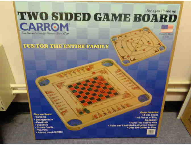 Enjoy this two sided carrom game board that can be fun for the whole family!