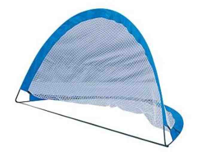 Folds up into its own nylon carrying case. A soccer ball and pump are also included. Now you can play soccer anywhere anytime! You can take it to the park or just set it up in your own backyard!