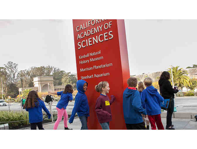 Two tickets to the California Academy of Sciences in San Francisco. The California Academy of Sciences is a renowned scientific and educational institution dedicated to exploring, explaining, and sustaining life on Earth.