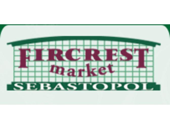 $50 Gift Certificate to Fircrest Market and a strong and sturdy Canvas Shopping Bag. Fircrest Market is a full service market in Sebastopol, California. Founded in 1993, Fircrest Market is a grocery retail store that offers a range of barbecued meat and vegetable items. It provides herb-crusted tri tips, portabella mushrooms, salmon, steaks and ribs. Located in Sebastopol, Calif., Fircrest Market also serves beer and wine.