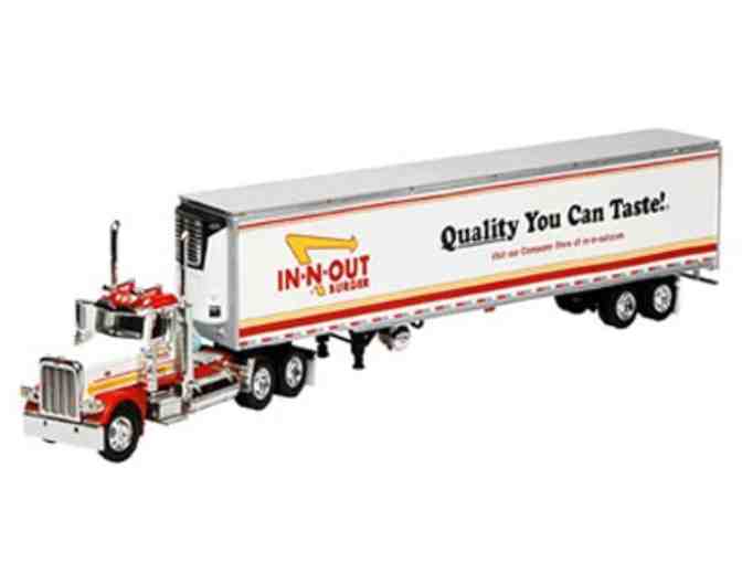 Features detailed die cast cab and trailer with interior, opening trailer doors, and working suspension.
