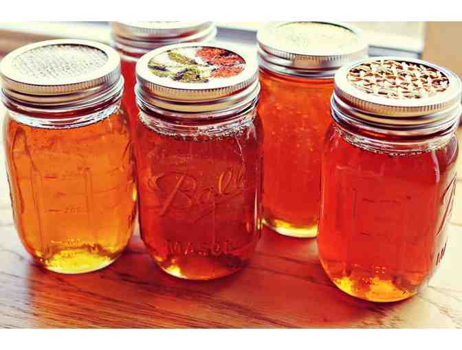 Fresh raw honey from our bees. You will receive a quart size mason jar of sweet delecious honey. Lovingly bottled by the Bradt-Saporito Family.