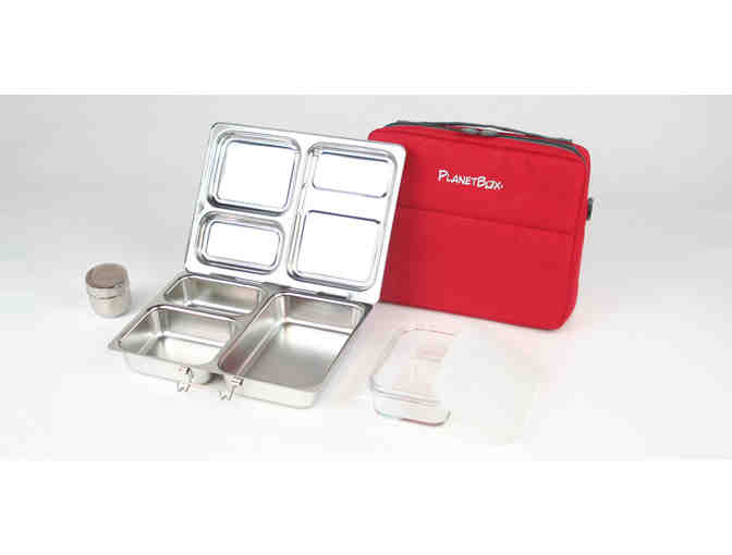 The PlanetBox Launch is intended for those with bigger appetites who want larger serving sizes. The Launch holds 30% more than the Rover at nearly 6.5 cups of food, and is designed to hold a 3 course meal. The Launch Complete Kit includes a Tall Dipper for dips and sauces, a super fun magnet set of your choice, a glass Satellite Dish for reheating foods, as well as your choice between a stylish Launch Carry Bag or slim Sleeve for easy transport.