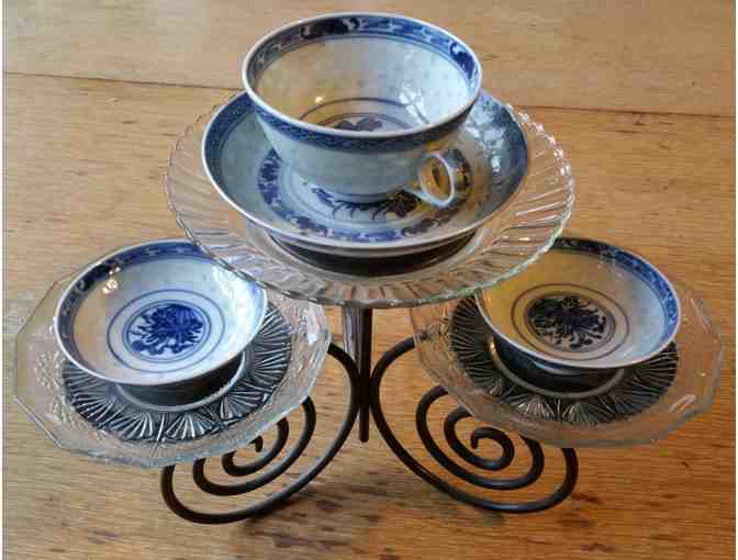 I have items that I find and I take them home and I combine them to make them a "new" item. This triple tea cup holder will hold 3 tea cups.