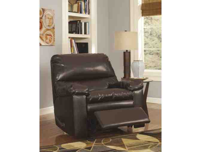 Bonded Leather Rocker Recliner by Ashley Furniture - Coffee, Shreveport Only!