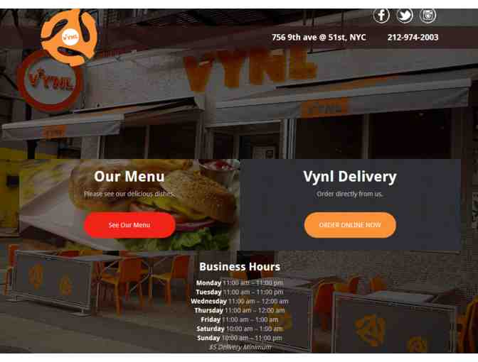 VYNL Restaurant in Hells Kitchen: $100 Gift Certificate
