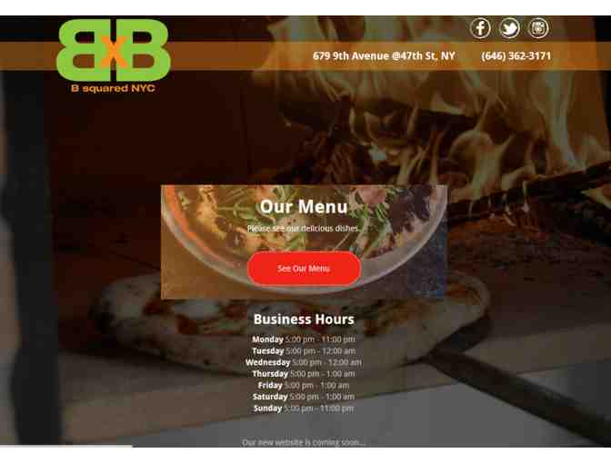 $100 gift certificate for dining at B Squared NYC. Fabulous Italian food. Great atmosphere!