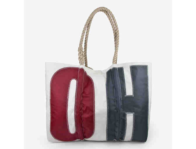This Large Custom Scarlet & Grey OH Sea Bag, from Fresh Crafts Gallery, is perfect for your next Ohio State tailgate, a day out on the boat or at the beach, heading to the library or class, a quick trip to the farmers market, and for all your everyday needs. This Sea Bag has hand-spliced hemp rope handles designed for shoulder carry and a clasp for closure. Spot clean or machine wash; handmade from recycled sail material; Made in USA. Shop for additional unique items at the Fresh Crafts Gallery with this $25 gift card.