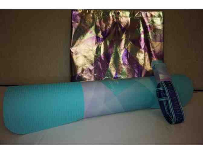Bring your 'A' game to Yoga with your turquoise and gray yoga mat with your turquoise and blue strap from ivivva.