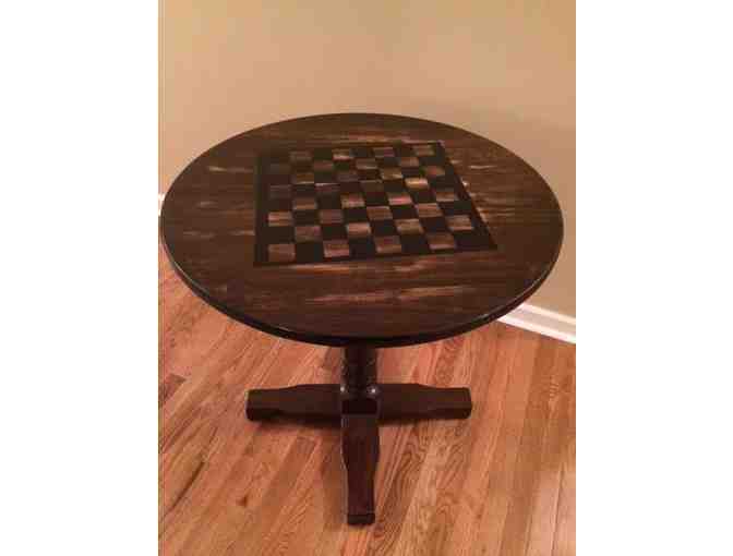 This table top chess board is perfect for the chess lovers in your family. No storage needed and it's a beautiful solid wood table that will go in any room of the house.
