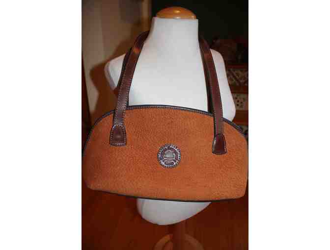 The highest bidder for this item will receive this gorgeous large rust colored suede leather with dark leather trim tote made in Argentina.