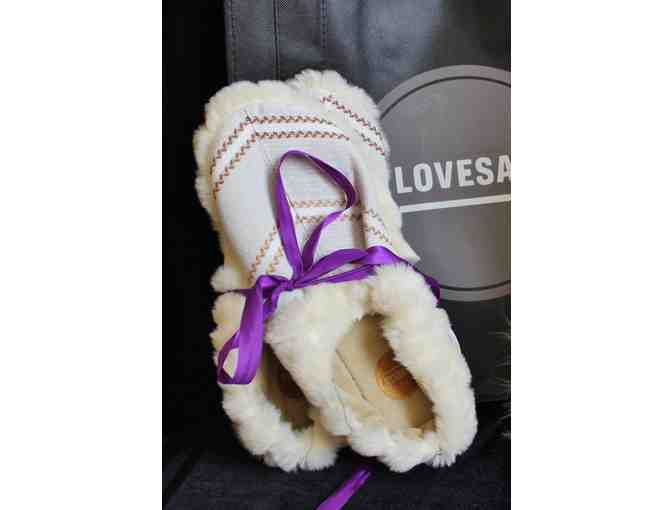 These Phur Feet ivory cloud phur/native weave slippers are bound to keep your feet warm on those cold winter nights. Size Large.