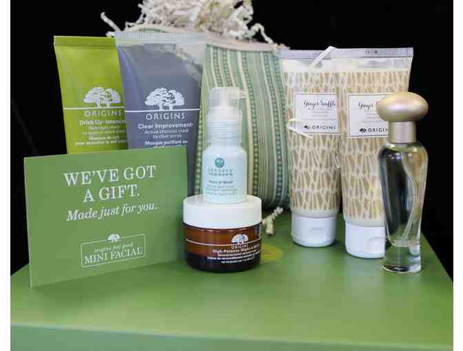 Give yourself some TLC with a mini facial with Origins professionals and a gift basket featuring their best selling skin care products. Gift basket includes: