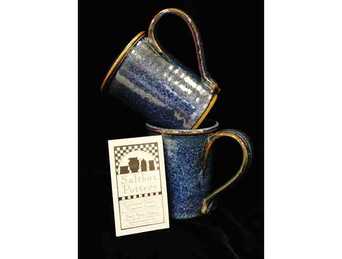 Two hand thrown coffee mugs from Saltbox Pottery, located at 4 Shaw Rd. in Woolwich, Maine.