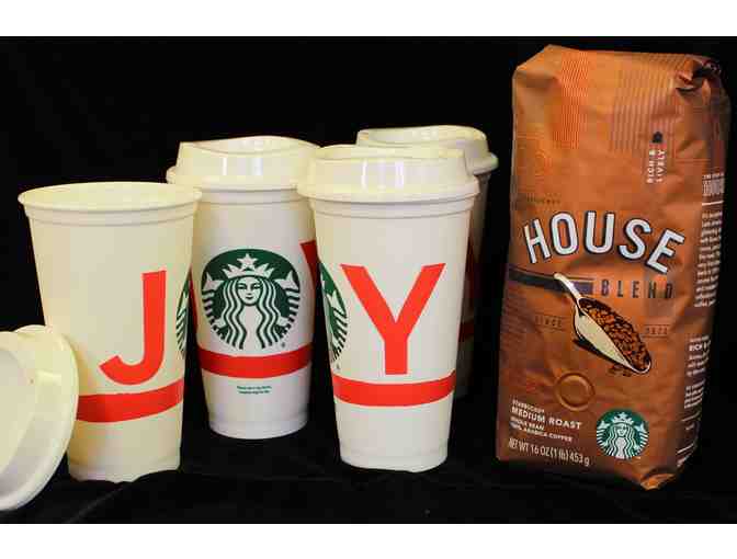 Enjoy a pound of Starbucks House Blend with 4 resuable Coffee Cups