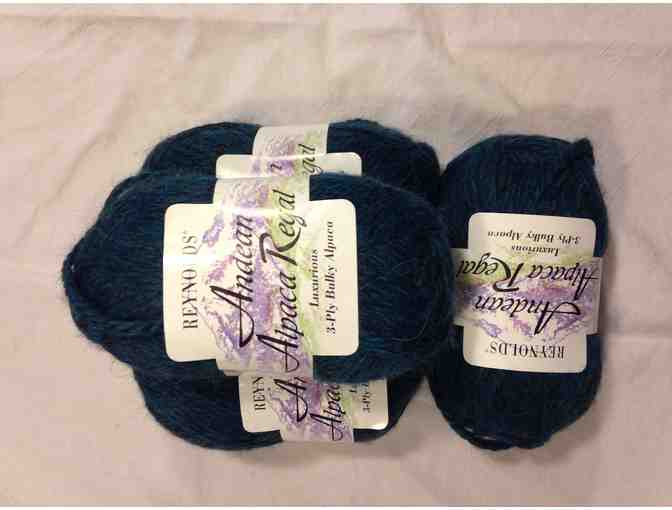 Bulky weight alpaca with a little wool (10%). This luxurious yarn makes super warm mittens, hats and scarves. With 440 yards, you can make all three.