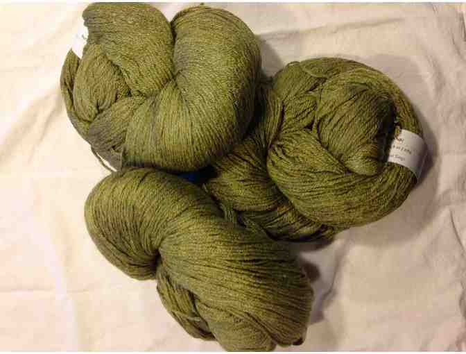 Colorway is The Green that Sings. Picture that as a cardigan with 1860 yard you could knit it double stranded.
