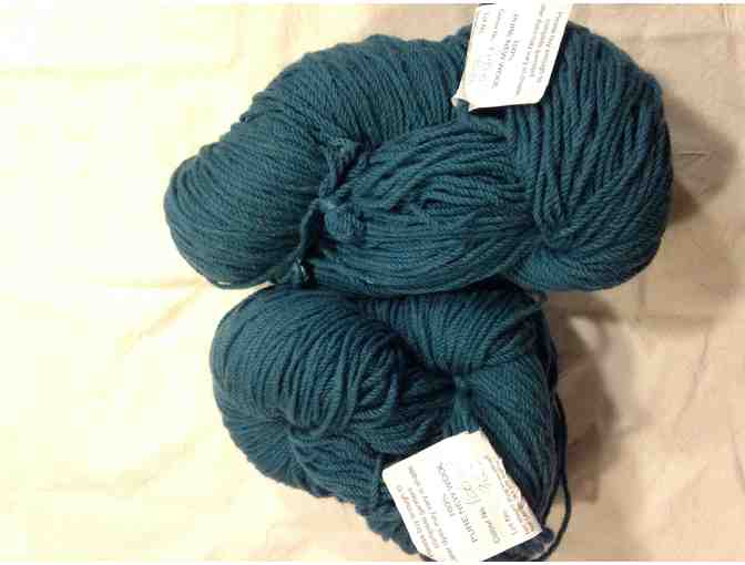Pretty teal aran weight 100% wool. 730 yards will make a vest or a few accessories. This yarn will felt.