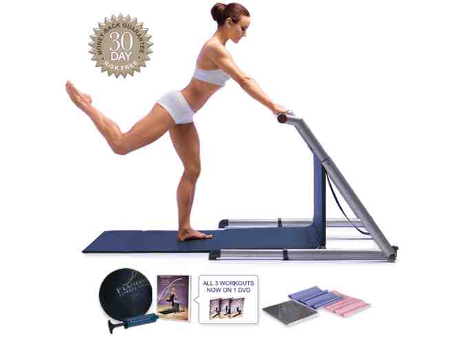 Reinvent yourself with a totally modern workout! The Ultimate Fluidity Barre System Includes: • patented Fluidity Barre • Beginner, Intermediate & Advanced and Seat and Thigh workouts • Ball • Bands • Healthy Eating Guide