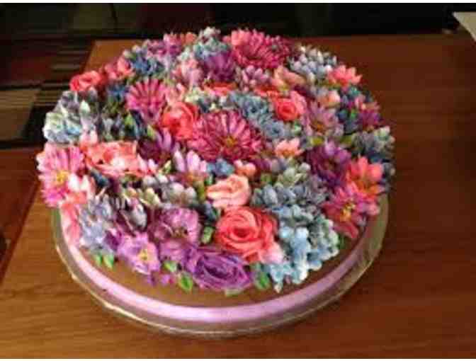 9 Inch flower cake or cupcake equivalent. Double layer cake of choice filled with delicious buttercream and decorated with fantastic floral designs. Cake serves 12 - 20 people.