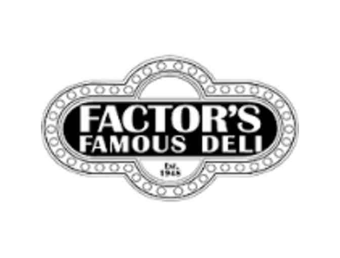 The highest bidder for this item will receive a certificate good for lunch or dinner for 4 at Factor's Famous Deli.