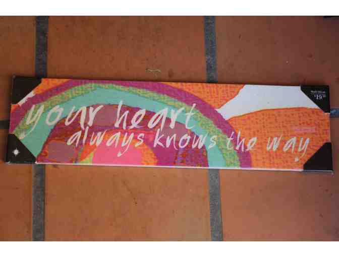 The highest bidder for this item will receive a colorful "Your Heart Always Knows The Way" wall decor great for a teen's room.