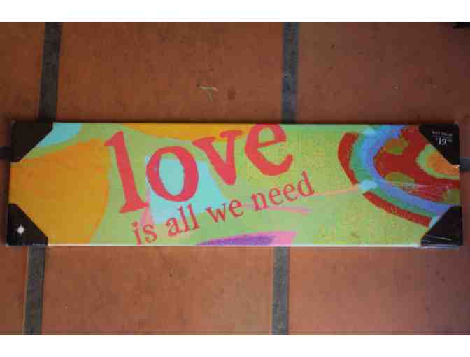 THe highest bidder for this item will receive a fun piece of art for a teen's wall which reads "Love Is All We Need"