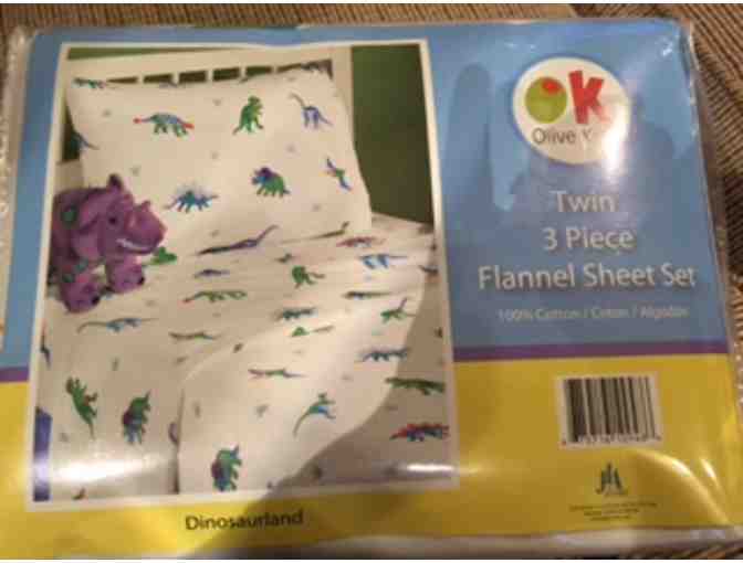 Let your little one sleep easy and cozy in these fun Dinosaur Twin Flannel Sheets