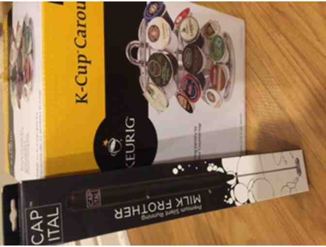 The Keurig K-Cup Carousel features 24 cup capacity and a lazy susan base that conveniently rotates to let you pick your favorite flavor. Make delicious cappuccinos or lattes at home with the Capital Milk Frother.