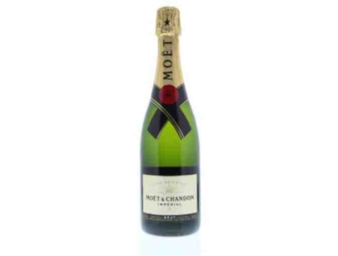 The highest bidder for this item will receive a bottle of Moet & Chandon Imperial Brut Champagne. This champagne is "Well-balanced, exhibiting flavors of light toast, Gala apple, honey and ginger, with smoke and mineral notes underscoring hints of tropical pineapple and tangerine fruit. There's lovely texture, with a firm backbone of juicy acidity."